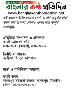 ডেস্ক রিপোর্ট: দেশের গণমাধ্যম অঙ্গনে নতুন সংযোজন হিসেবে আত্মপ্রকাশ করেছে অনলাইন নিউজ পোর্টাল ‘বাংলার কণ্ঠ প্রতিদিন’।